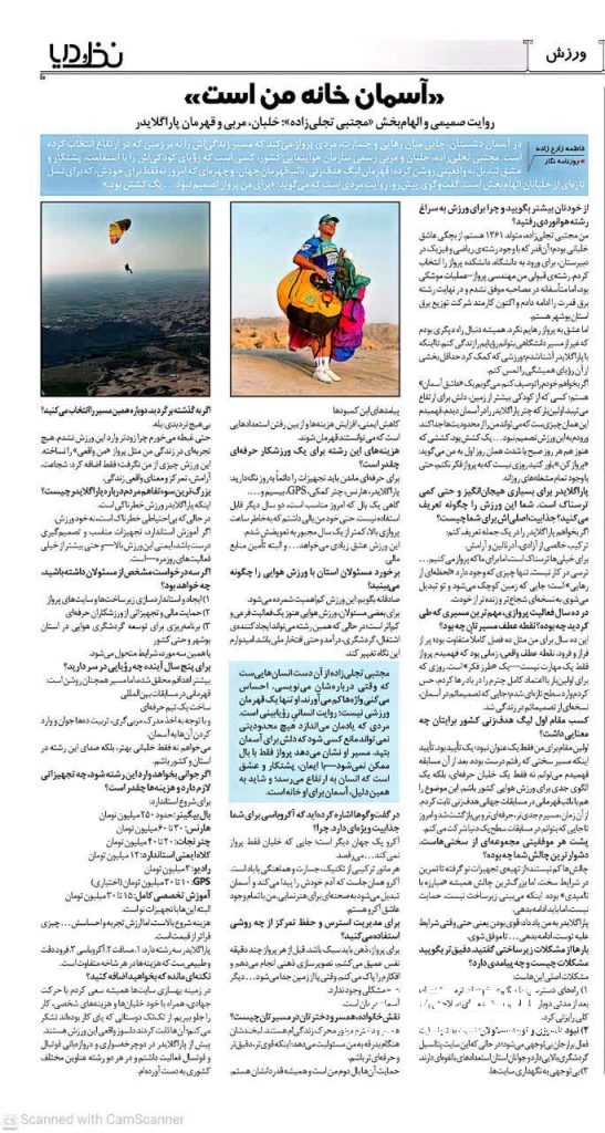 حتی غبطه میخورم چرا زودتر وارد این ورزش نشدم. هیچ تجربهای در زندگی من مثل پرواز «من واقعی» را نساخته. این ورزش چیزی از من نگرفت؛ فقط اضافه کرد: شجاعت، آرامش، تمرکز و معنای واقعی زندگی.