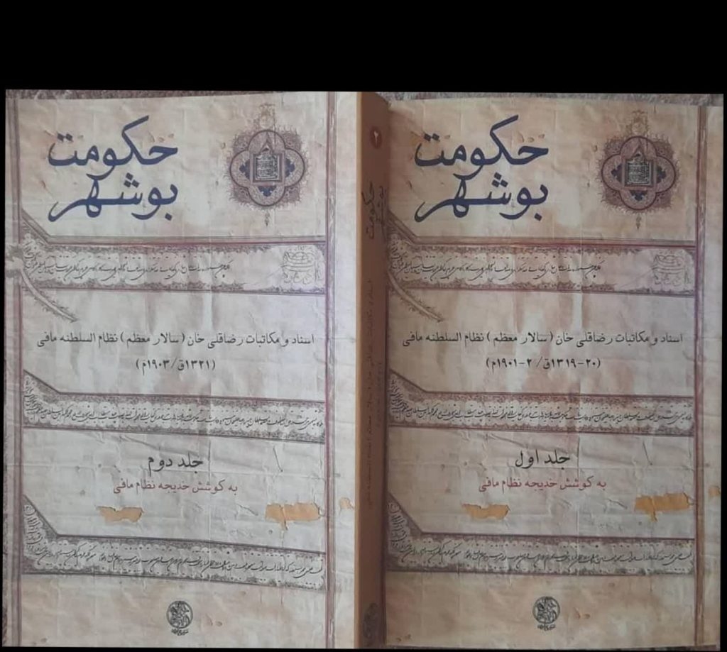 دوره دو جلدی «حکومت بوشهر» به همت و تلاش بانو خدیجه نظاممافی در دو جلد مصور، در قطع رقعی و به تیراژ هزار نسخه در سال ۱۳۹۰، توسط انتشارات نشر تاریخ ایران در تهران منتشر شده است. این کتاب همراه با مجوزهای چاپ و نشر از جمله شابک و شماره کتابشناسی ملی، ثبت در ردهبندیهای کنگره و دیویی، فهرستنویسی برابر «فیپا»، طراحی روی جلد و صفحهآرایی مناسب، ارائه شده و حاوی اسناد و مدارک جالب و اطلاعات مفید تاریخی در حوزه بوشهرشناسی و بوشهرپژوهی است.