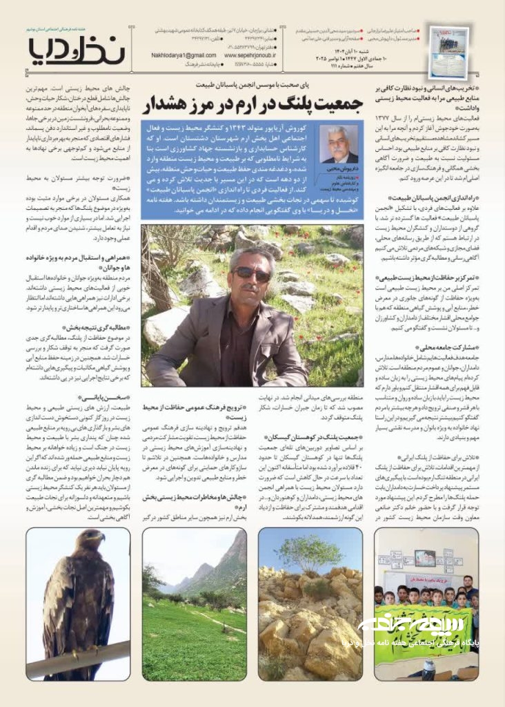 علاوه بر فعالیتهای فردی، با تشکیل «انجمن پاسبانان طبیعت» فعالیت ها گسترده تر شد. با گروهی از دوستداران و کنشگران محیط زیست در ارتباط هستم که از طریق رسانههای محلی، فضای مجازی و شبکههای مردمی تلاش میکنیم آگاهیرسانی و مطالبهگری مؤثر داشته باشیم.