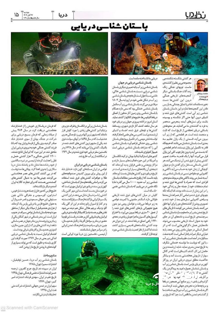 اهتمام ایرانیان نسبت به باستان شناسی دریایی اندکی دیر یعنی در سال ۱۳۷۷ صورت گرفت این کاری بایسته و دقیق است که میتواند بسیاری از گوشههای نا روشن تاریخ ما را روشن کند.