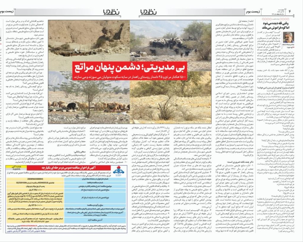 ✓ چرا این اداره علیرغم پیگیری های دو دهه ای دامداران از حق ساقط شده روستا و شورا و دهیاری راهدار، در بازگرداندن مراتع به ذینفعان حقیقی و قانونی همکاری نمی کند؟