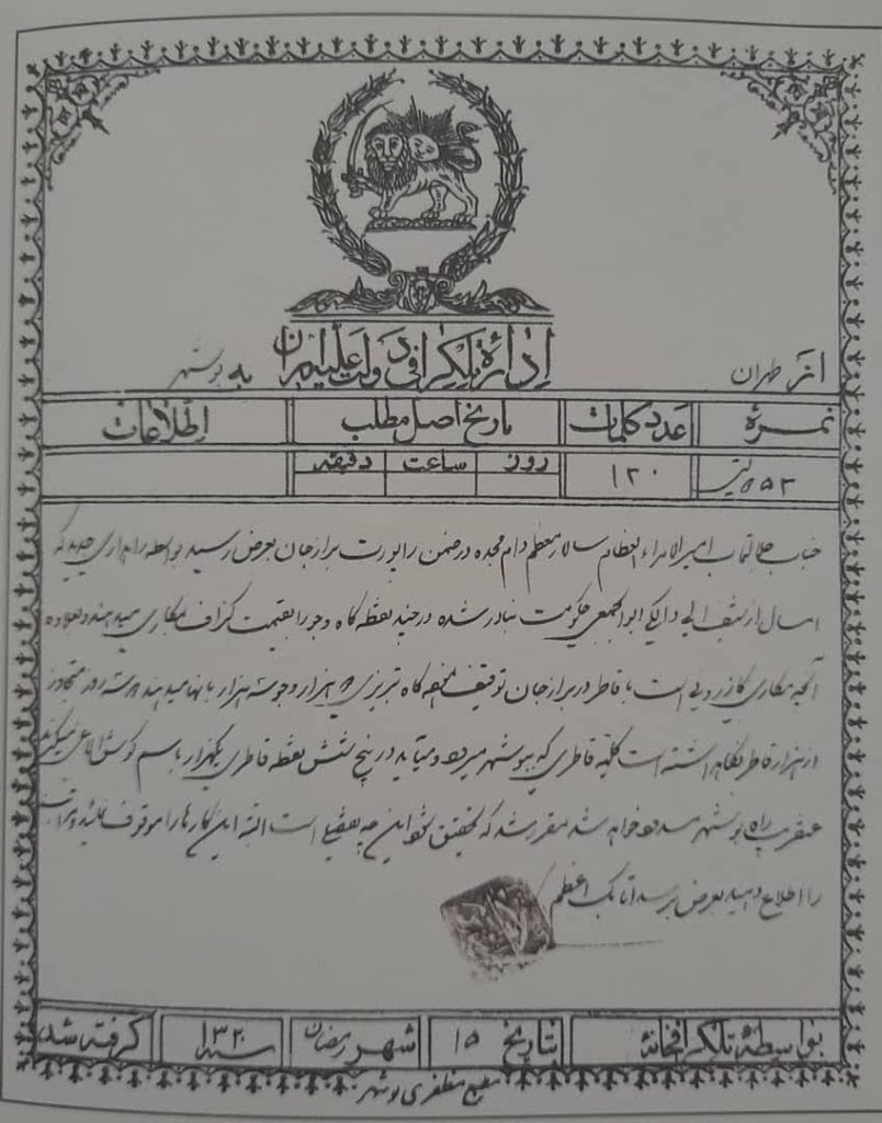 نگارش کتابهای لازم و ضروری در زمینه تاریخ مناطق فارس، بهویژه در حوزه ایرانپژوهی و استانپژوهی، بسیار اهمیت دارد و در این میان، تلاش گسترده و ارزشمند همراه با دقت و وسواس بسیار بانو خدیجه نظاممافی در گزینش اسناد برجای مانده، خوانش صحیح آنها، شرح و توضیح دقیق و درج تصاویر هر یک از اسناد مهم بوشهر، کاری سخت و اقدامی درخور تحسین است.